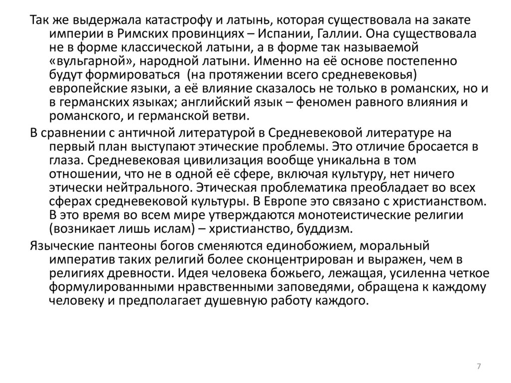 Так же выдержала катастрофу и латынь, которая существовала на закатеимперии в Римских провинциях – Испании, Галлии. Она существовала