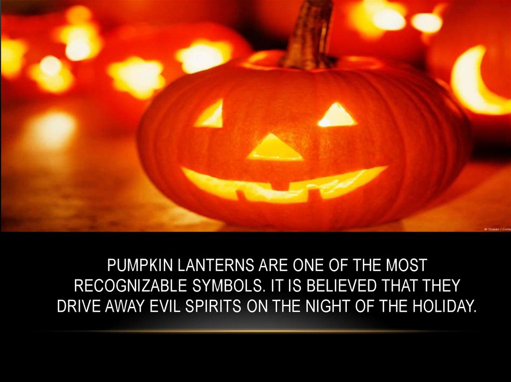 PUMPKIN LANTERNS ARE ONE OF THE MOSTRECOGNIZABLE SYMBOLS. IT IS BELIEVED THAT THEY