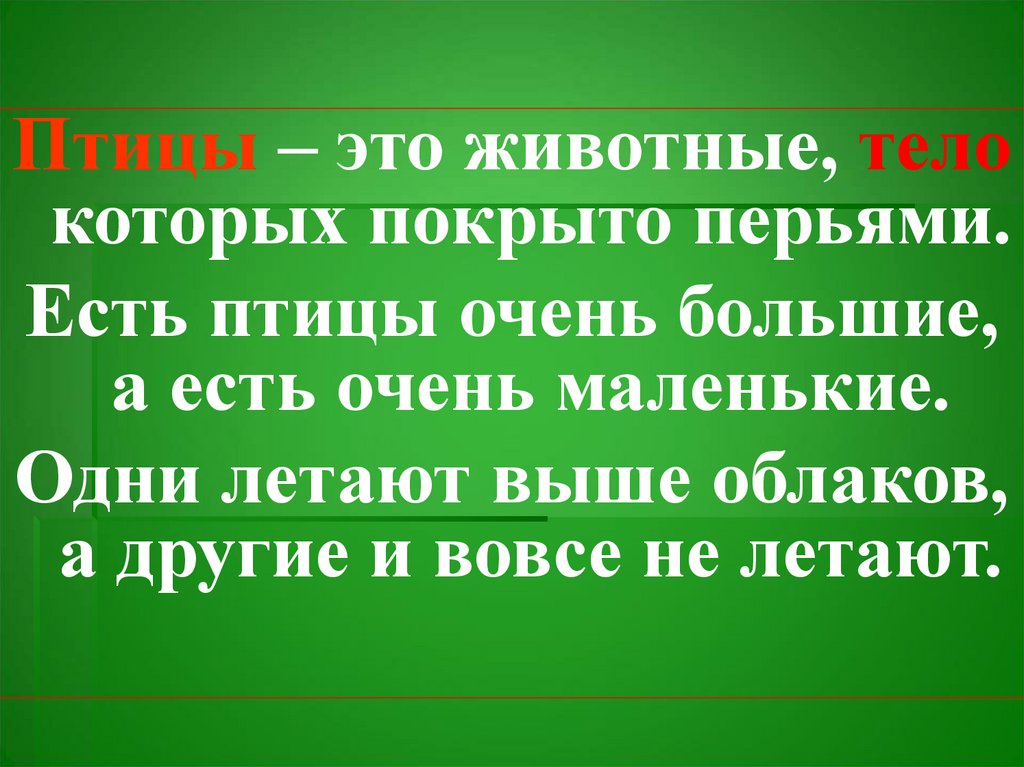 Птицы – это животные, телокоторых покрыто перьями.