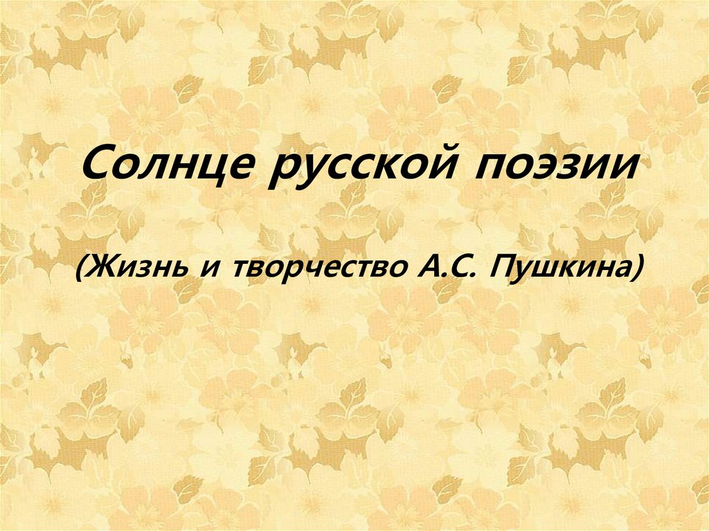 1. Солнце русской поэзии (Жизнь и творчество А.С. Пушкина)