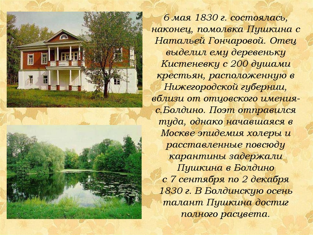 вблизи от отцовского именияс.Болдино. Поэт отправился