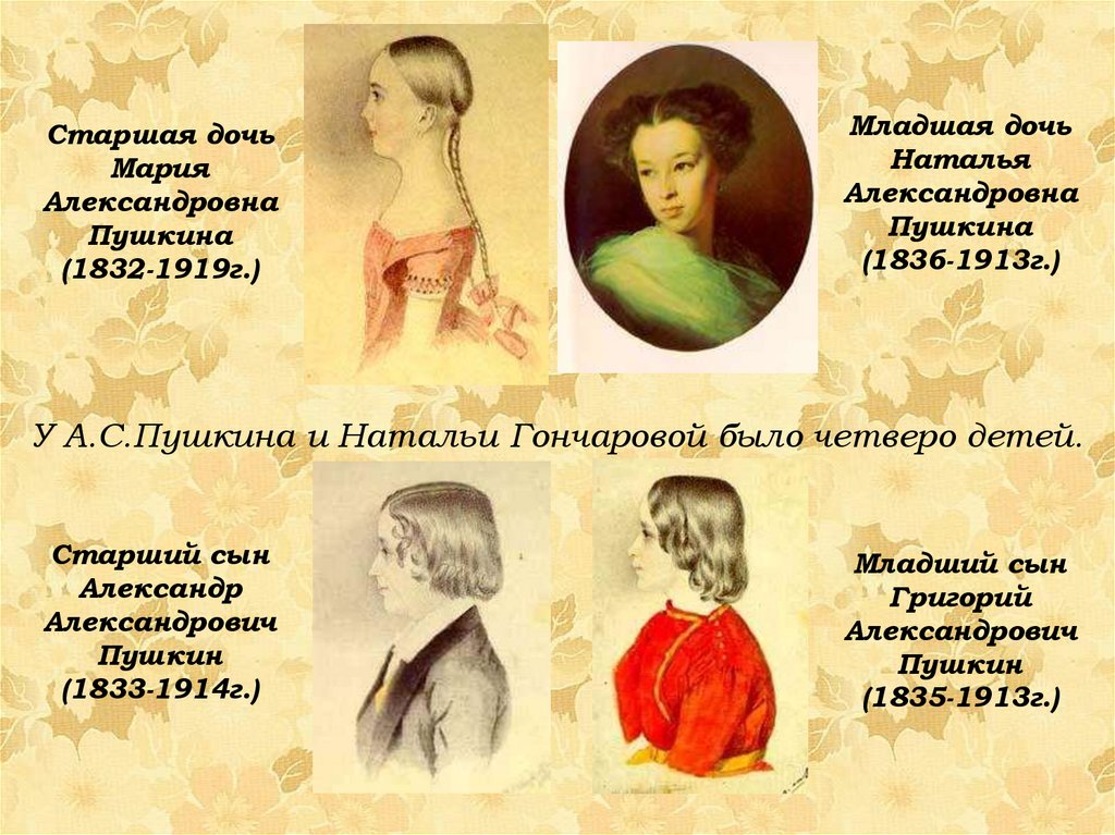 У А.С.Пушкина и Натальи Гончаровой было четверо детей.