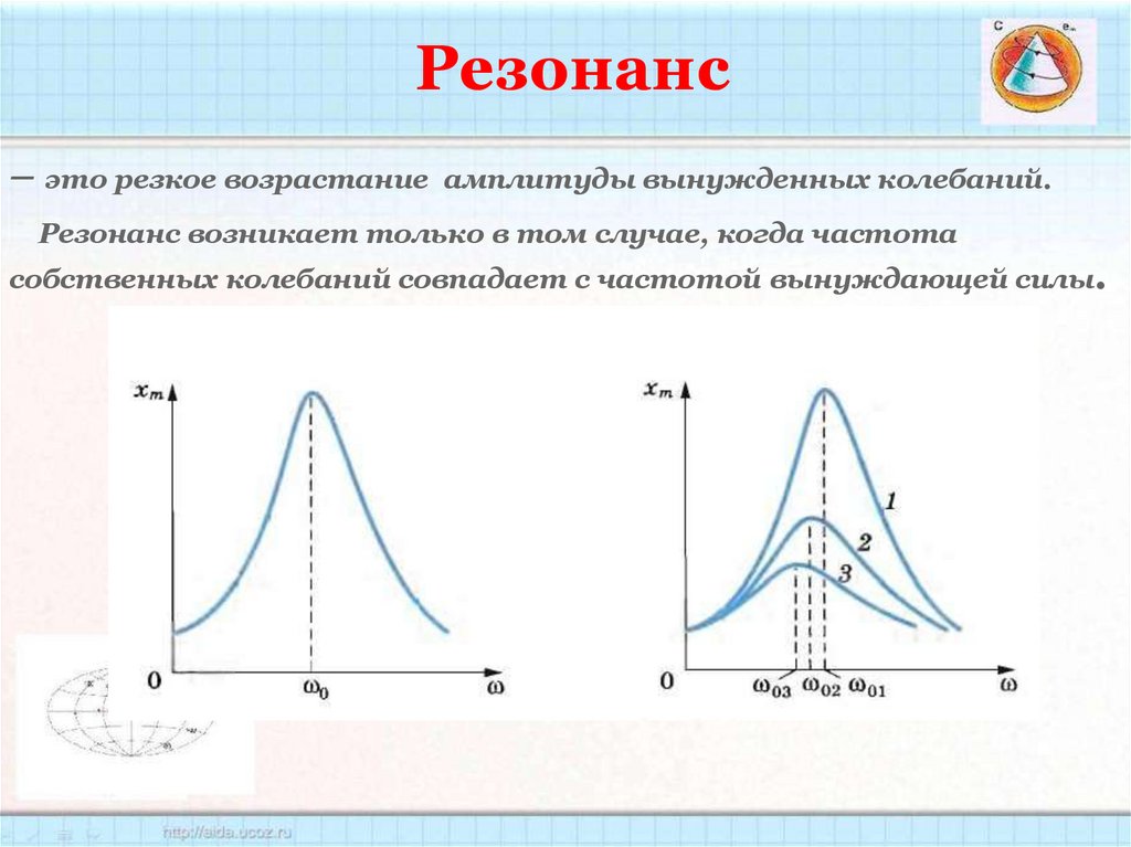 Резонанс– это резкое возрастание амплитуды вынужденных колебаний.