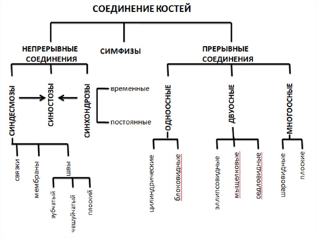 Соединения костей объединяют кости скелета в единое целое и
