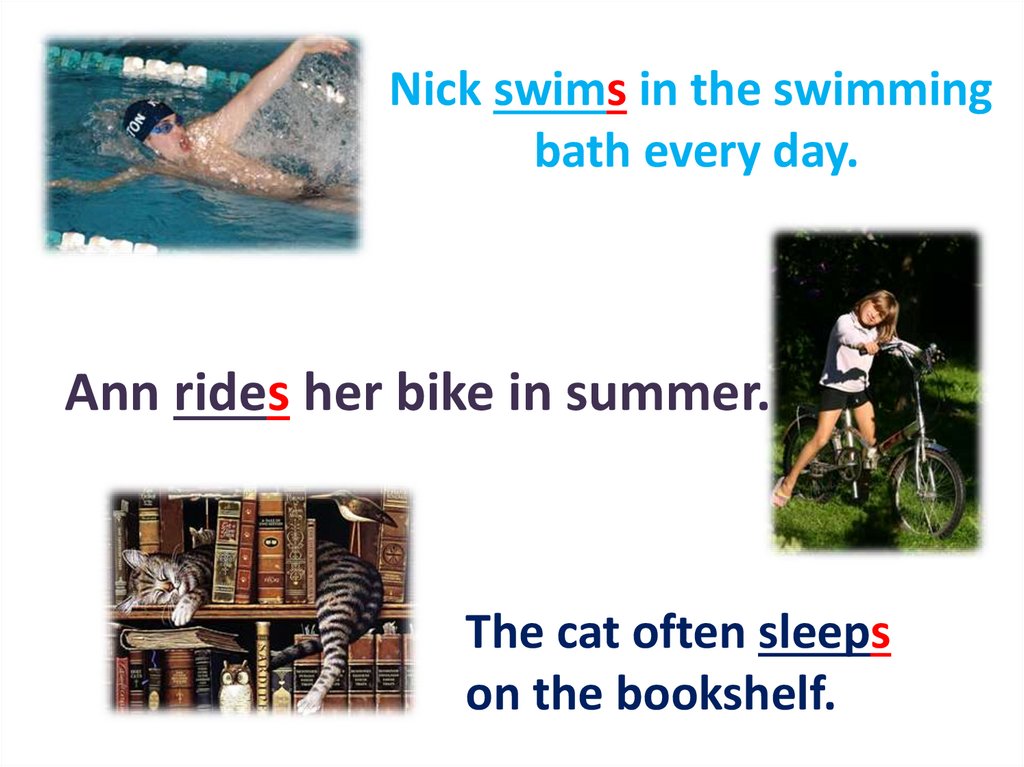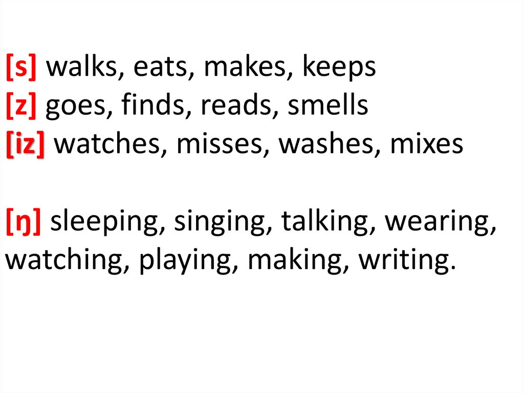 [s] walks, eats, makes, keeps[z] goes, finds, reads, smells