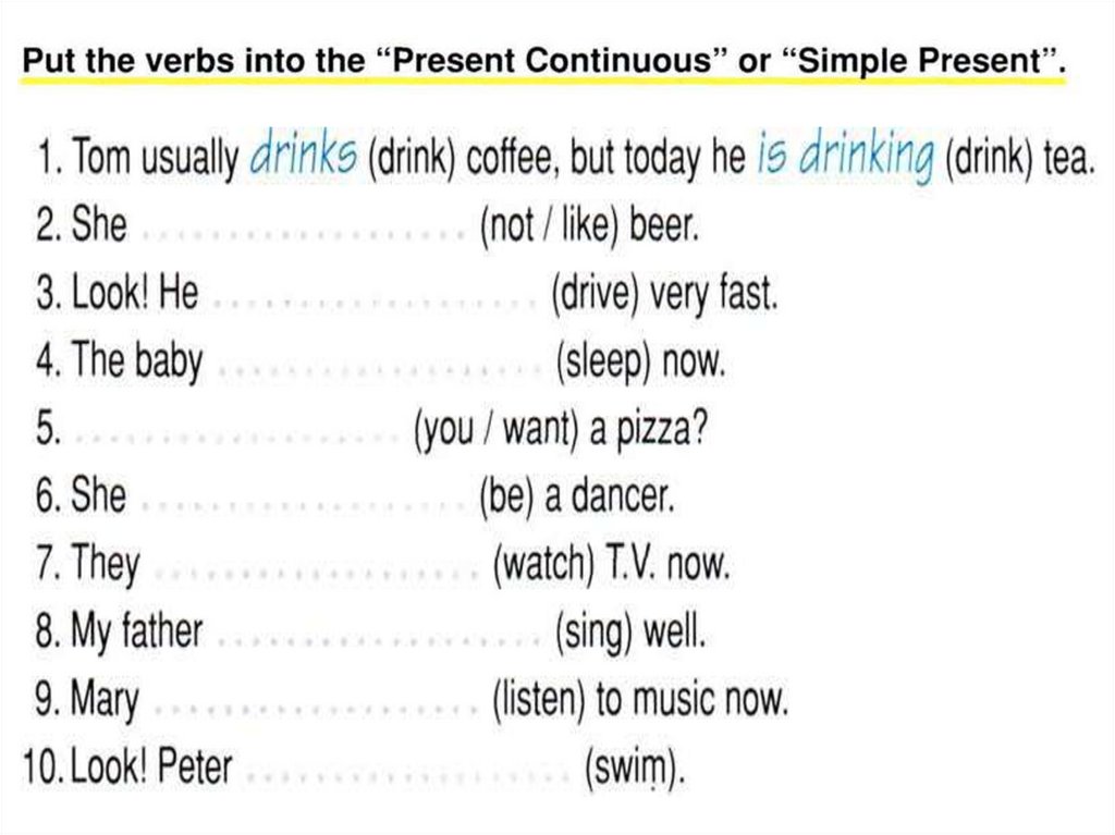 3.Is Jane drinking tea? – No, she (is drinking/drinks) coffee. Shealways (is drinking/drinks) coffee in the morning.