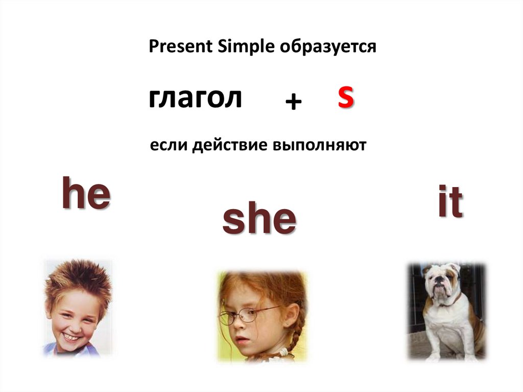В 3 л. ед.ч. добавляется - Глагол to be + Ving