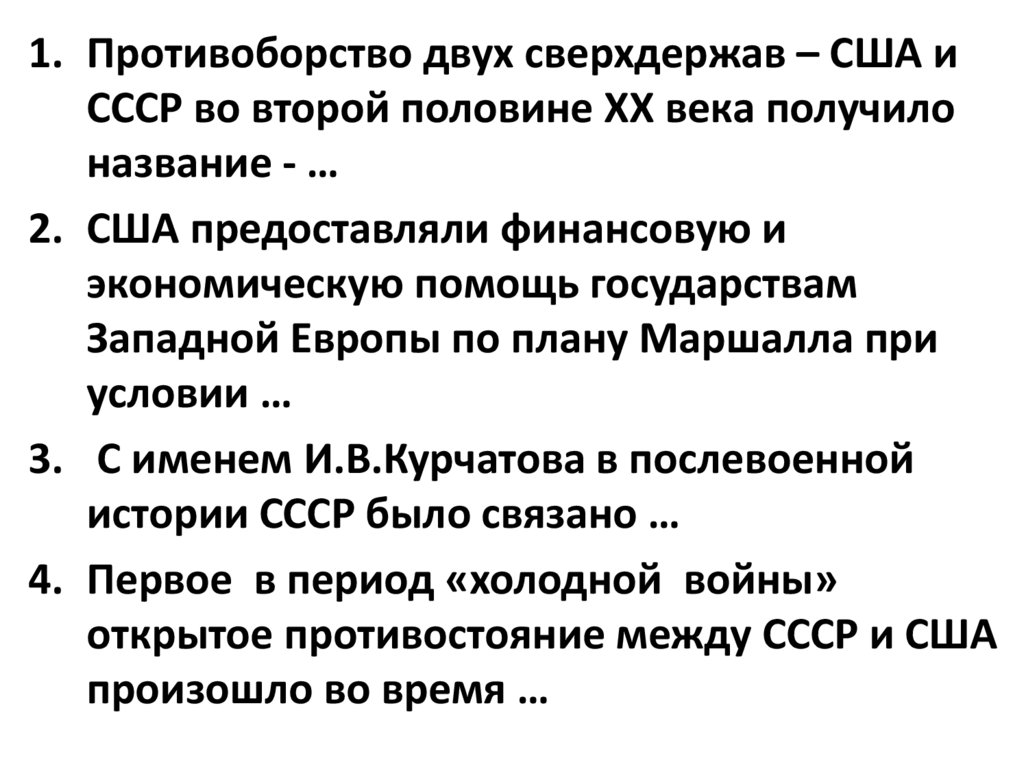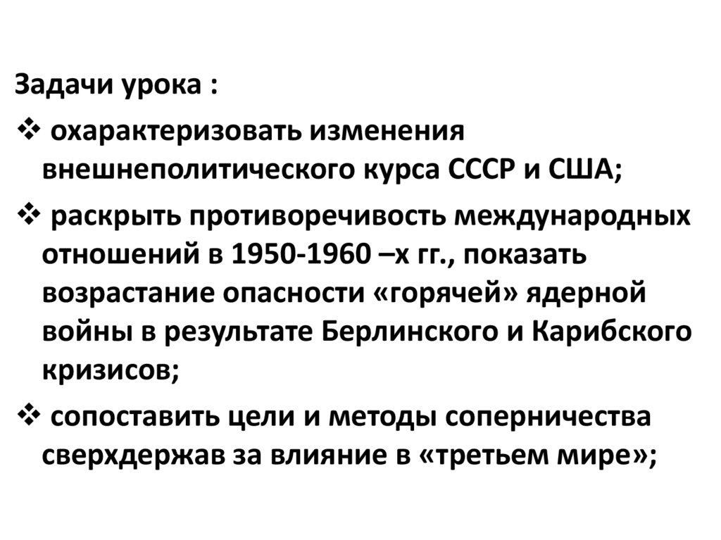 1. Противоборство двух сверхдержав – США иСССР во второй половине ХХ века получило