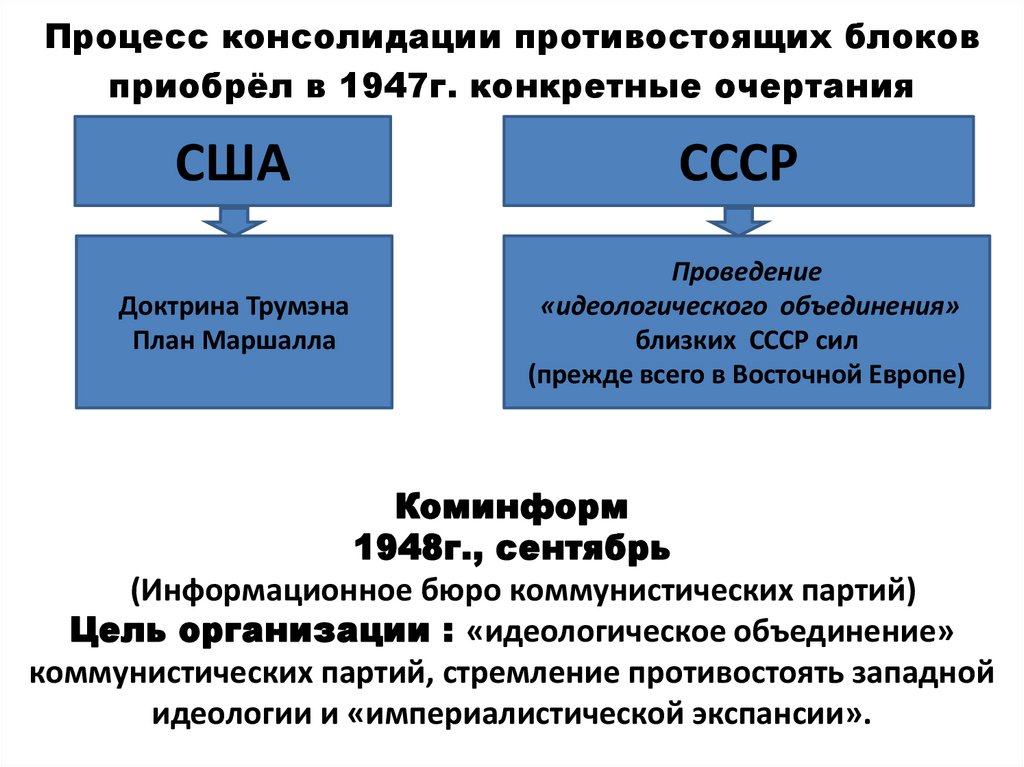 Процесс консолидации противостоящих блоковприобрёл в 1947г. конкретные очертания