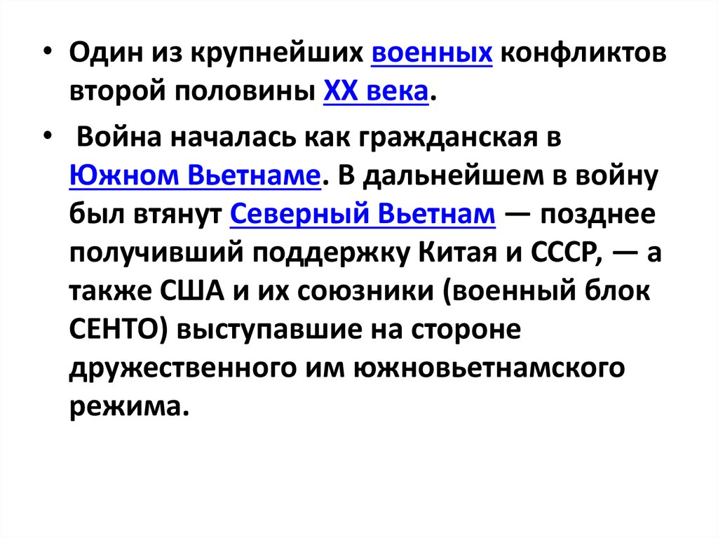 • Один из крупнейших военных конфликтоввторой половины XX века.