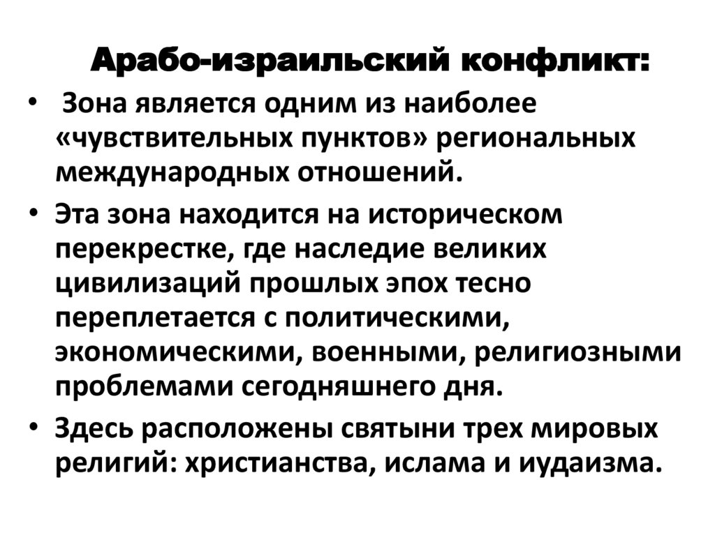 Арабо-израильский конфликт:• Зона является одним из наиболее