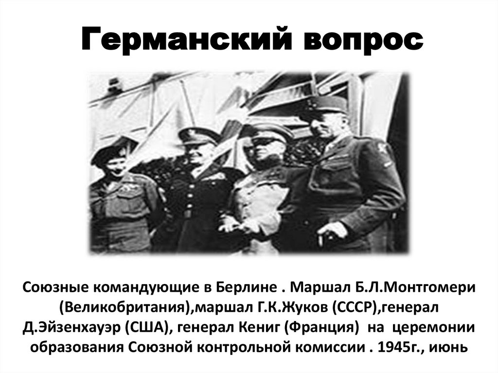 Германский вопросСоюзные командующие в Берлине . Маршал Б.Л.Монтгомери