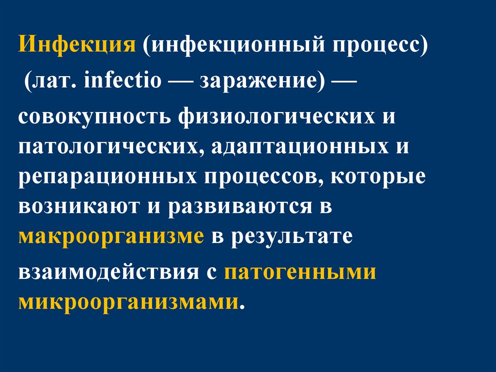 Инфекцией (или инфекционнымпроцессом) называется процесс