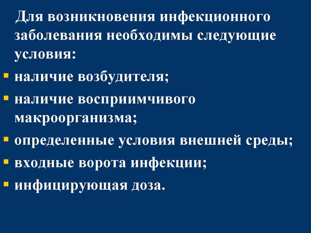Для возникновения инфекционногозаболевания необходимы следующие