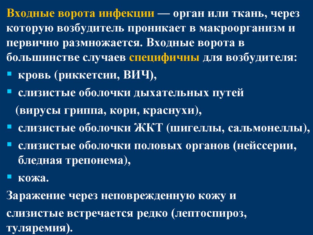 входные ворота инфекции;