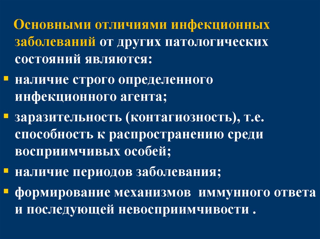 Основными отличиями инфекционныхзаболеваний от других патологических