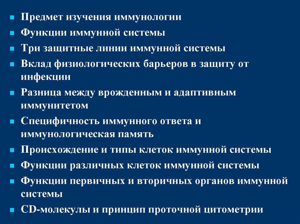 Предмет изучения иммунологииФункции иммунной системы