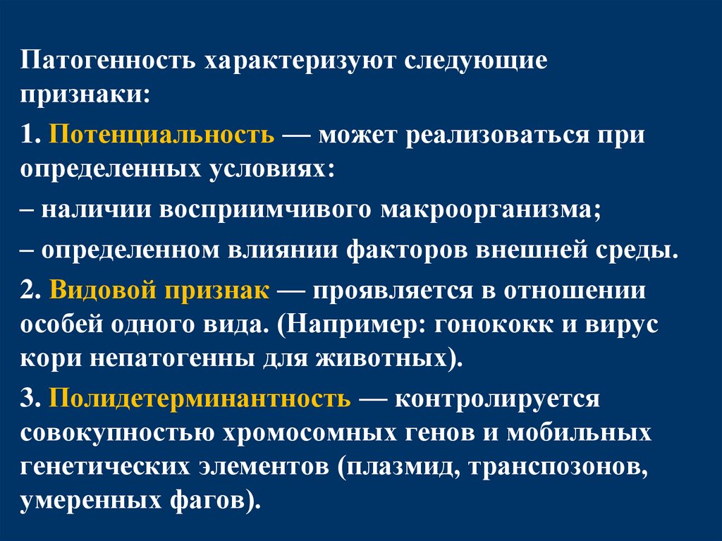Патогенность характеризуют следующиепризнаки: