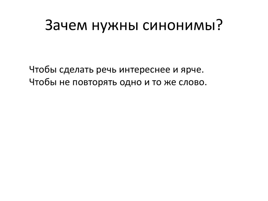 Зачем нужны синонимы?Чтобы сделать речь интереснее и ярче.
