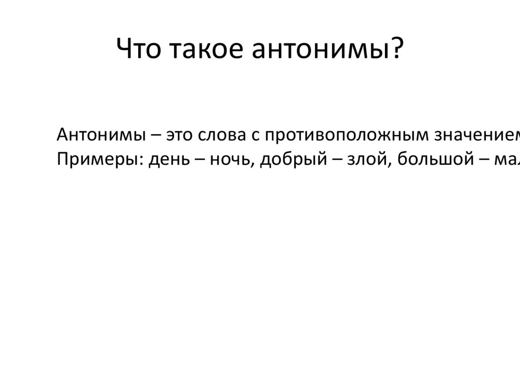 Что такое антонимы?Антонимы – это слова с противоположным значением