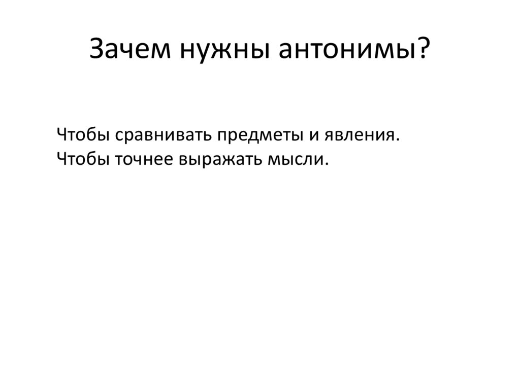 Зачем нужны антонимы?Чтобы сравнивать предметы и явления.
