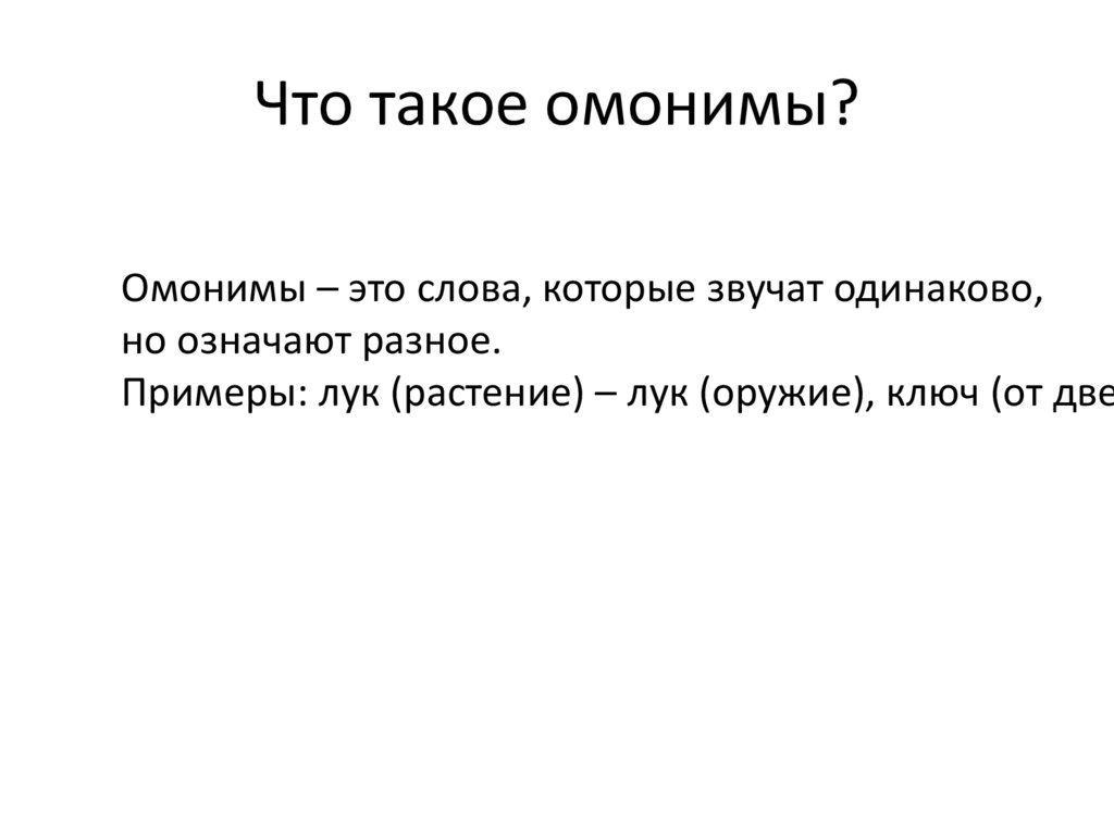 Что такое омонимы?Омонимы – это слова, которые звучат одинаково,