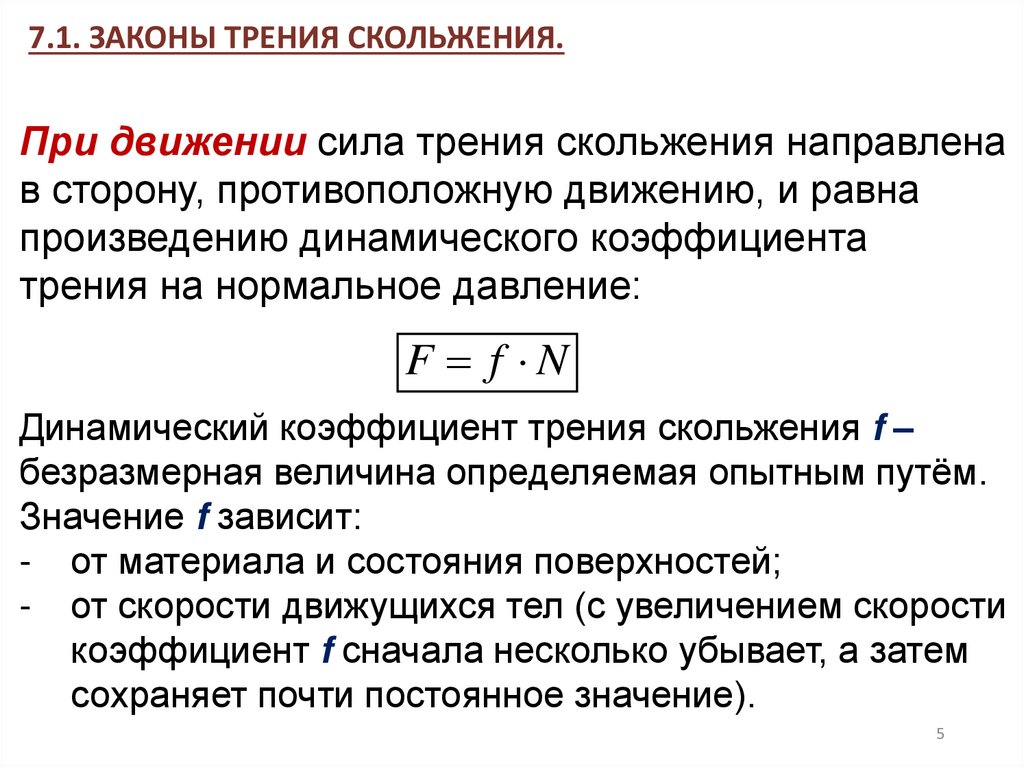 7.1. ЗАКОНЫ ТРЕНИЯ СКОЛЬЖЕНИЯ.