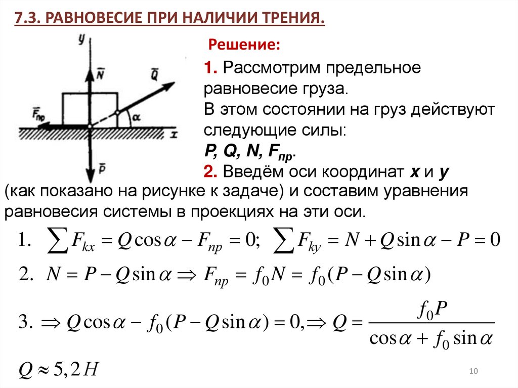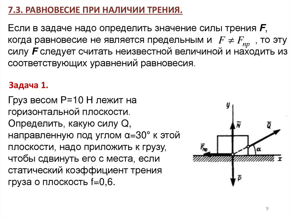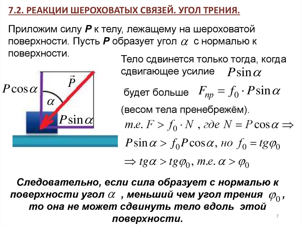 Тема 7.РАВНОВЕСИЕ ПРИ НАЛИЧИИ ТРЕНИЯ