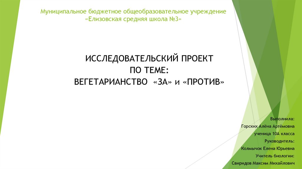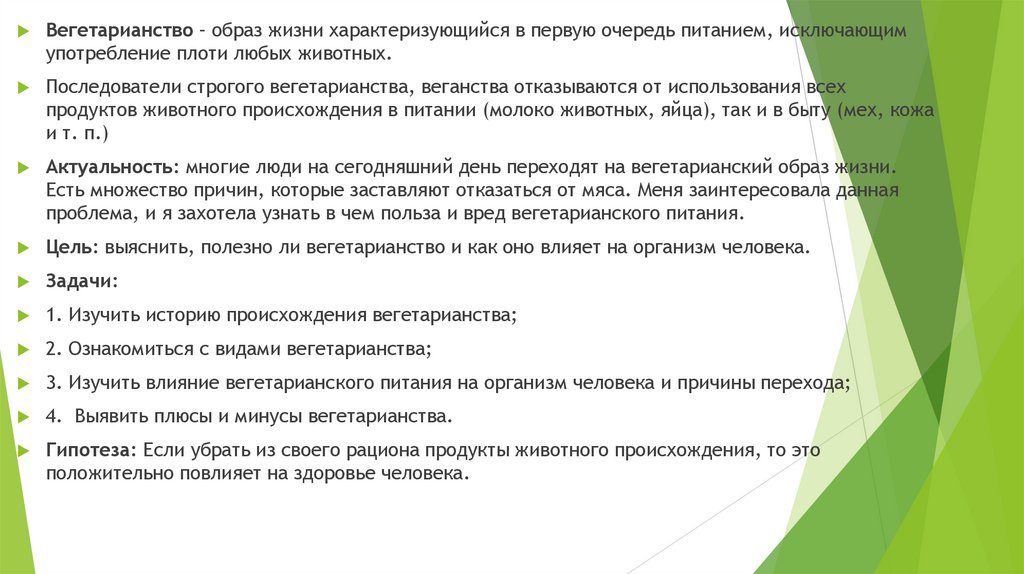 Цель: выяснить, полезно ли вегетарианство и как оно влияет на организм человека.