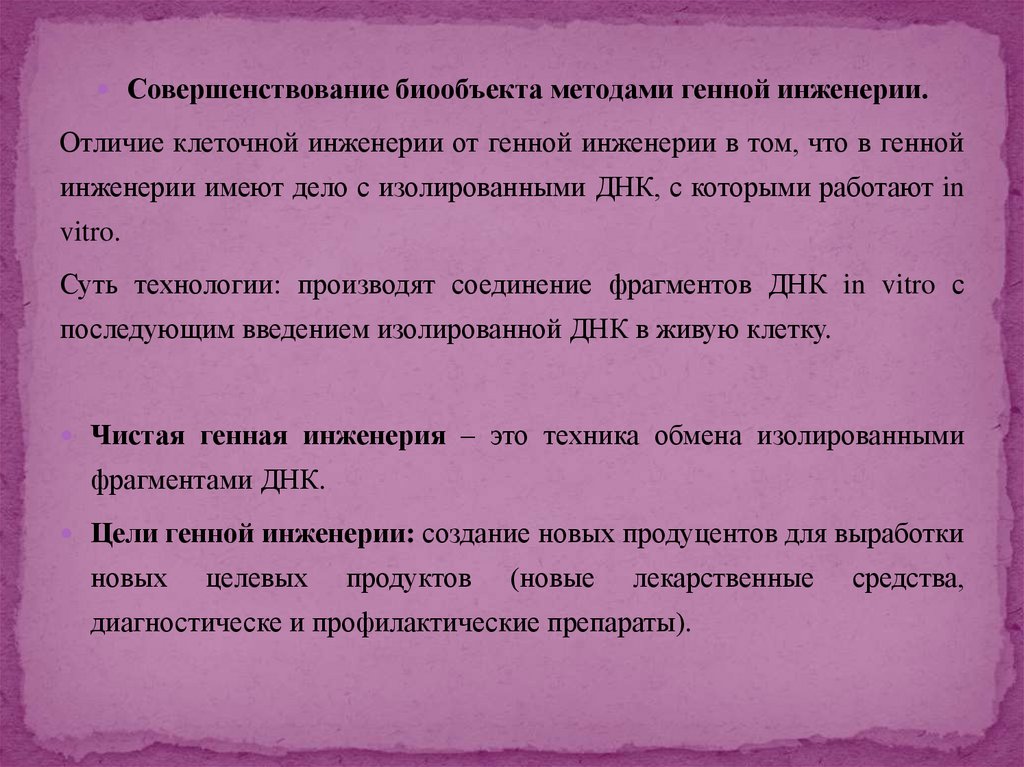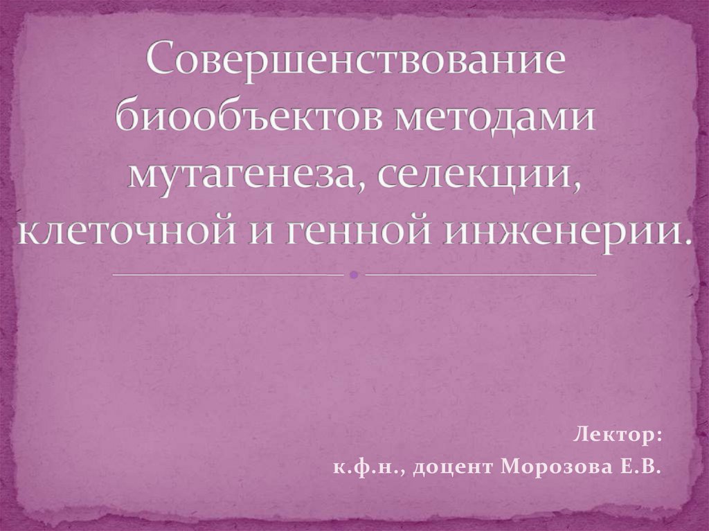 1. Совершенствование биообъектов методами мутагенеза, селекции, клеточной и генной инженерии.