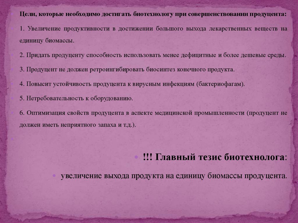 1. повышения стабильности и устойчивости микроорганизма как продуцента,