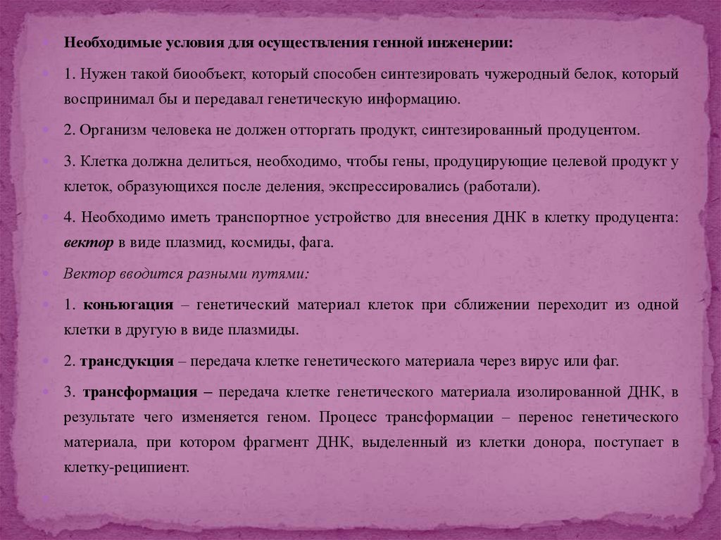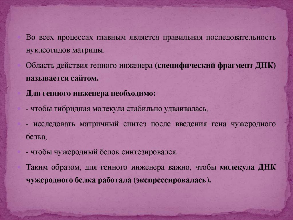 Таким образом, для генного инженера важно, чтобы молекула ДНК