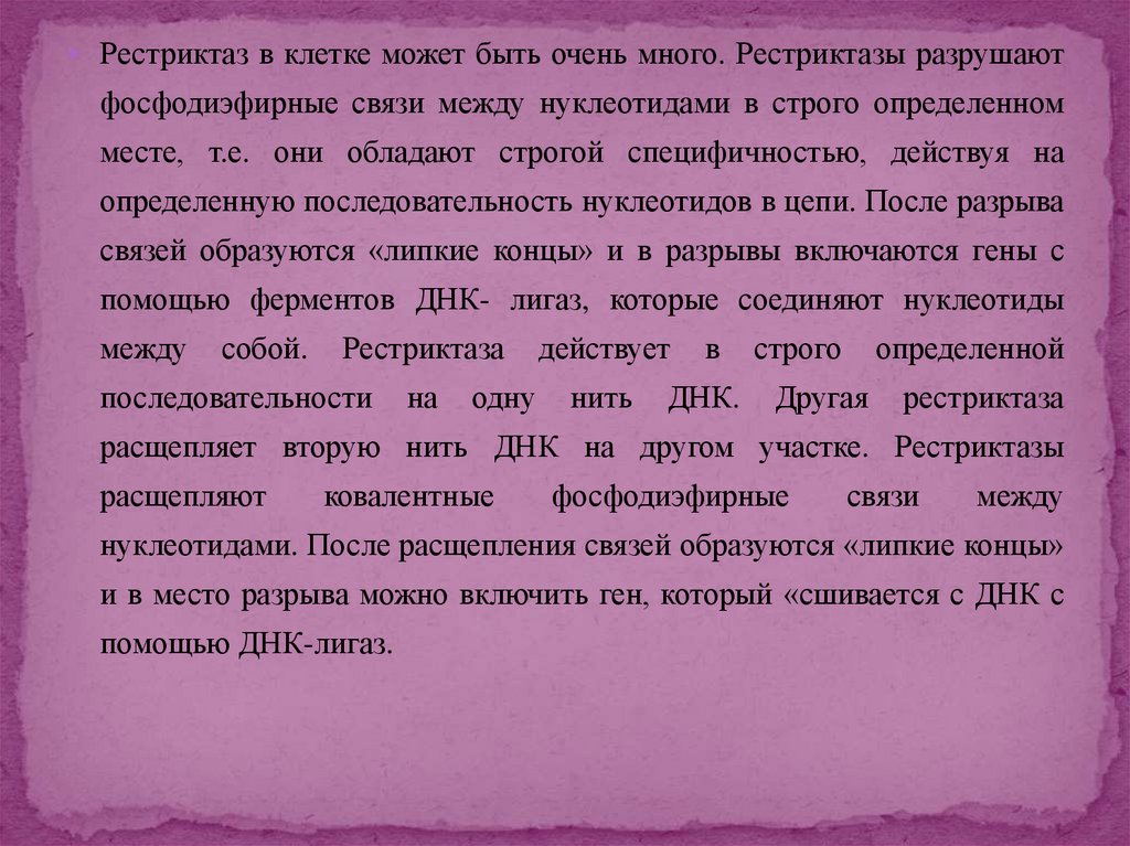 расщепляет вторую нить ДНК на другом участке. Рестриктазы