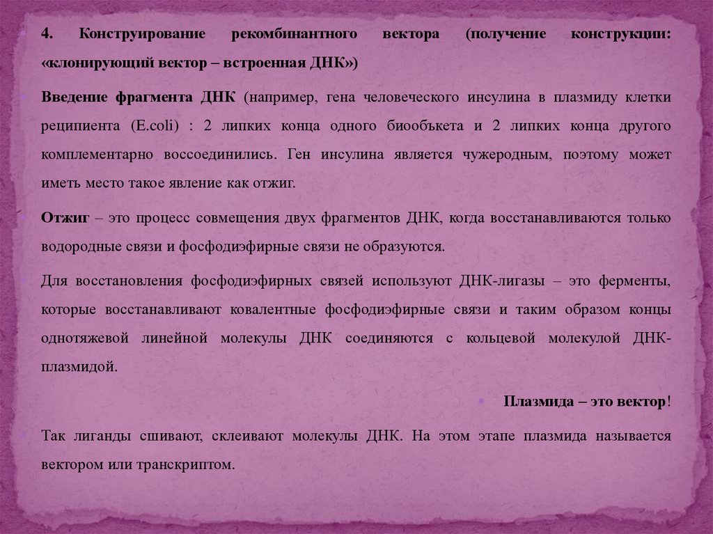 Так лиганды сшивают, склеивают молекулы ДНК. На этом этапе плазмида называется