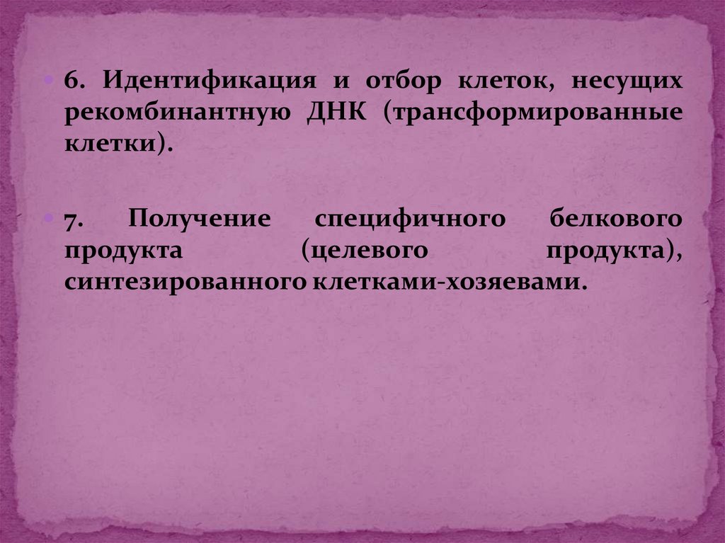 6. Идентификация и отбор клеток, несущихрекомбинантную ДНК (трансформированные