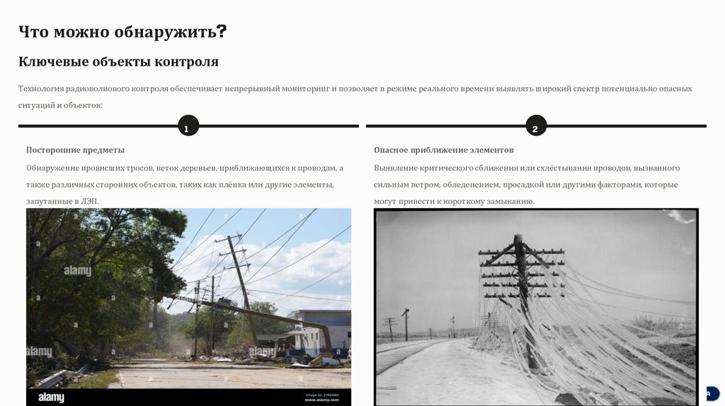 Обнаружение провисших тросов, веток деревьев, приближающихся к проводам, а