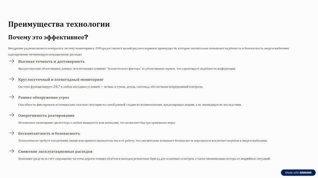 Внедрение радиоволнового контроля в систему мониторинга ЛЭП предоставляет целый ряд неоспоримых преимуществ, которые значительно повышают надёжность и безопасность энергоснабжения,