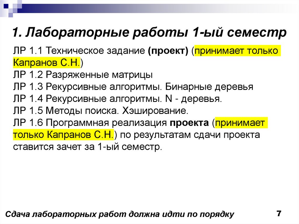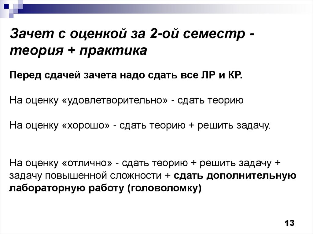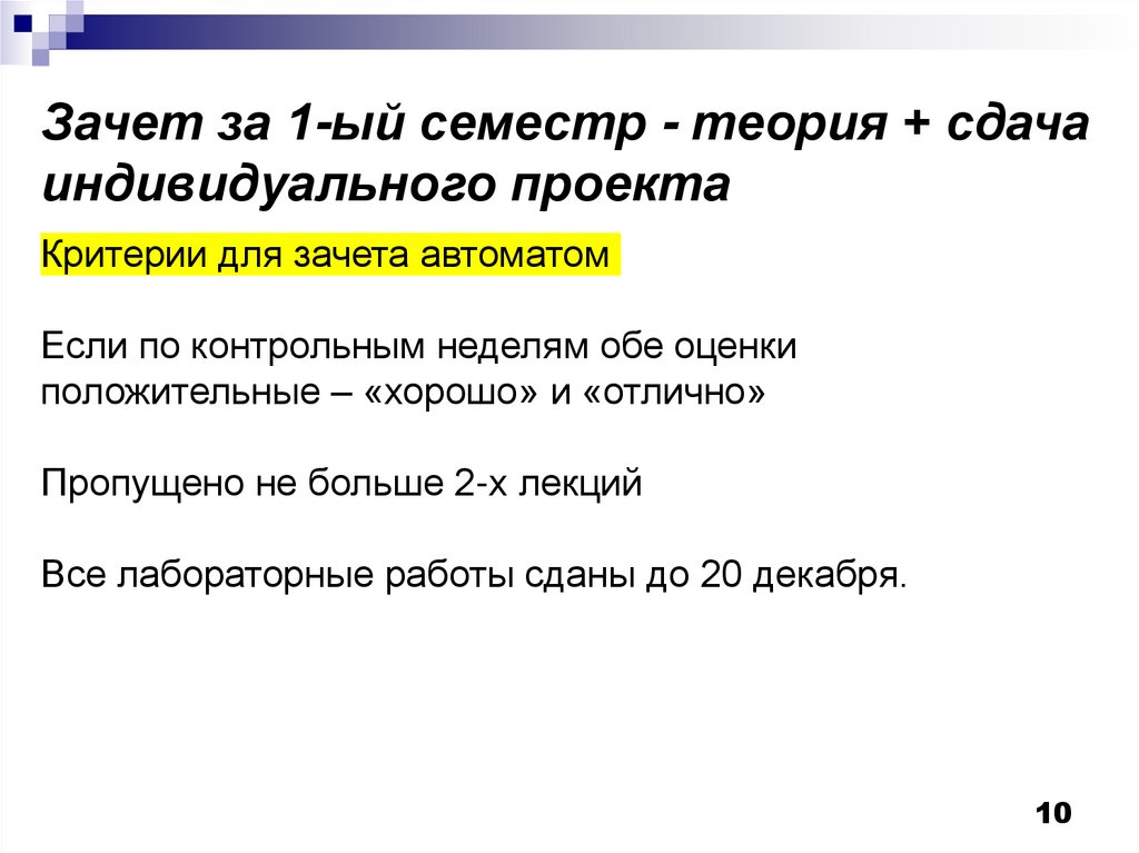 Зачет за 1-ый семестр - теория + сдачаиндивидуального проекта