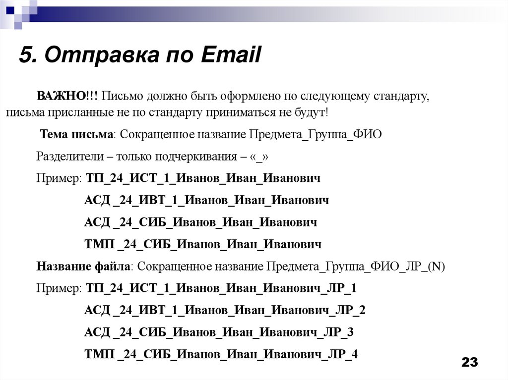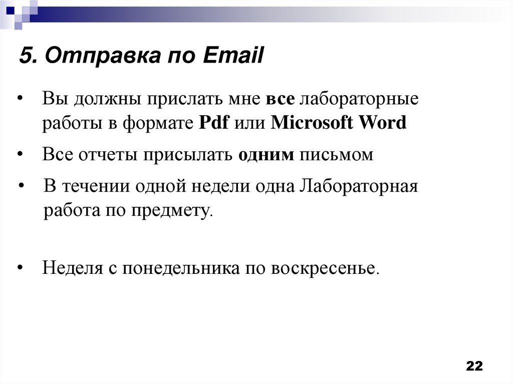 5. Отправка по Email• Вы должны прислать мне все лабораторные