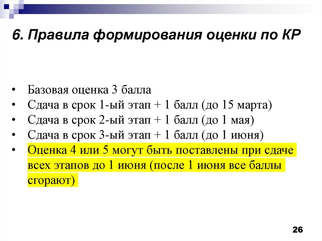 6. Правила формирования оценки по КРБазовая оценка 3 балла