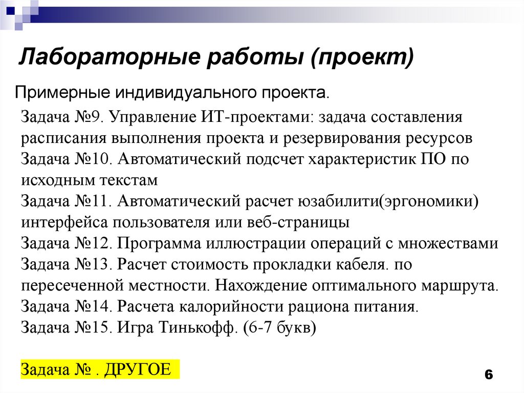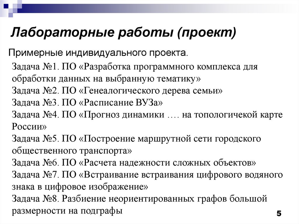 Лабораторные работы (проект)Примерные индивидуального проекта.