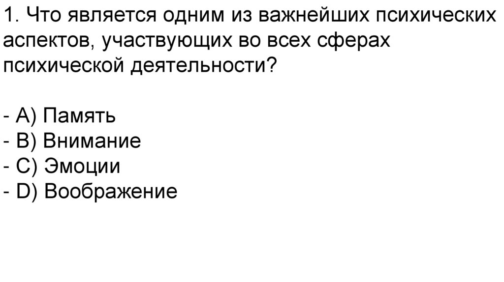 1. Что является одним из важнейших психическихаспектов, участвующих во всех сферах
