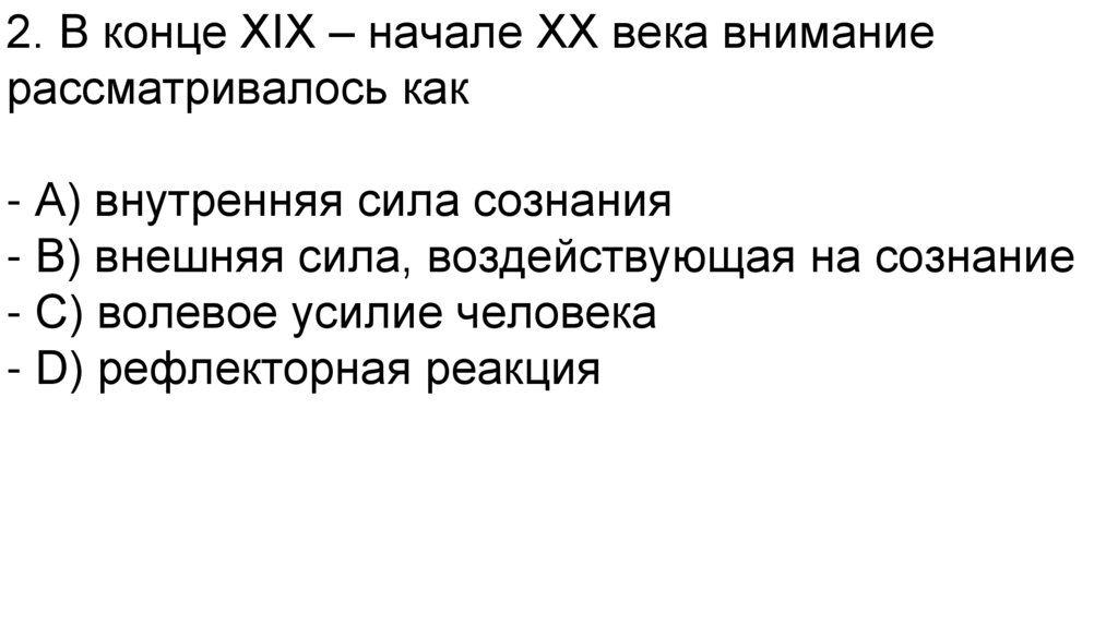 2. В конце XIX – начале XX века вниманиерассматривалось как