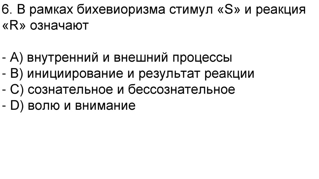 - A) бессознательная реакция на стимулы