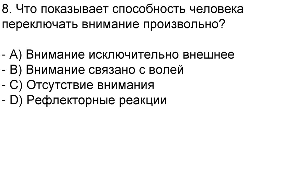 8. Что показывает способность человекапереключать внимание произвольно?