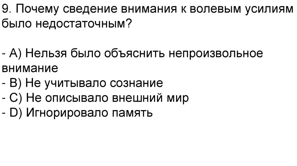 9. Почему сведение внимания к волевым усилиямбыло недостаточным?