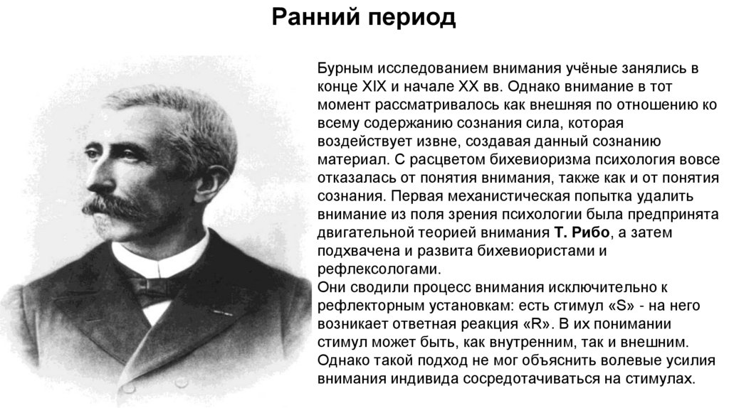 Ранний периодБурным исследованием внимания учёные занялись в