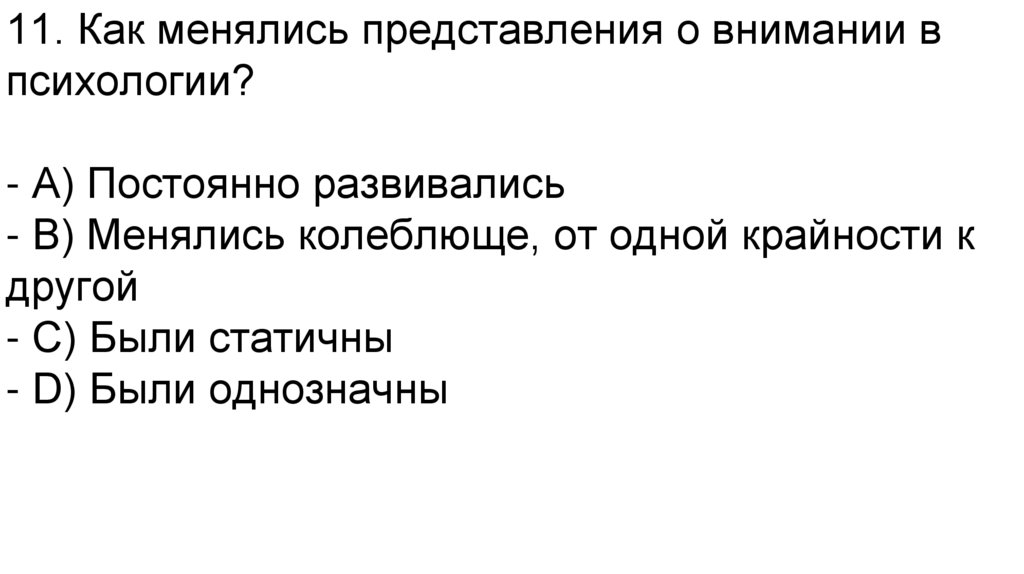 11. Как менялись представления о внимании впсихологии?