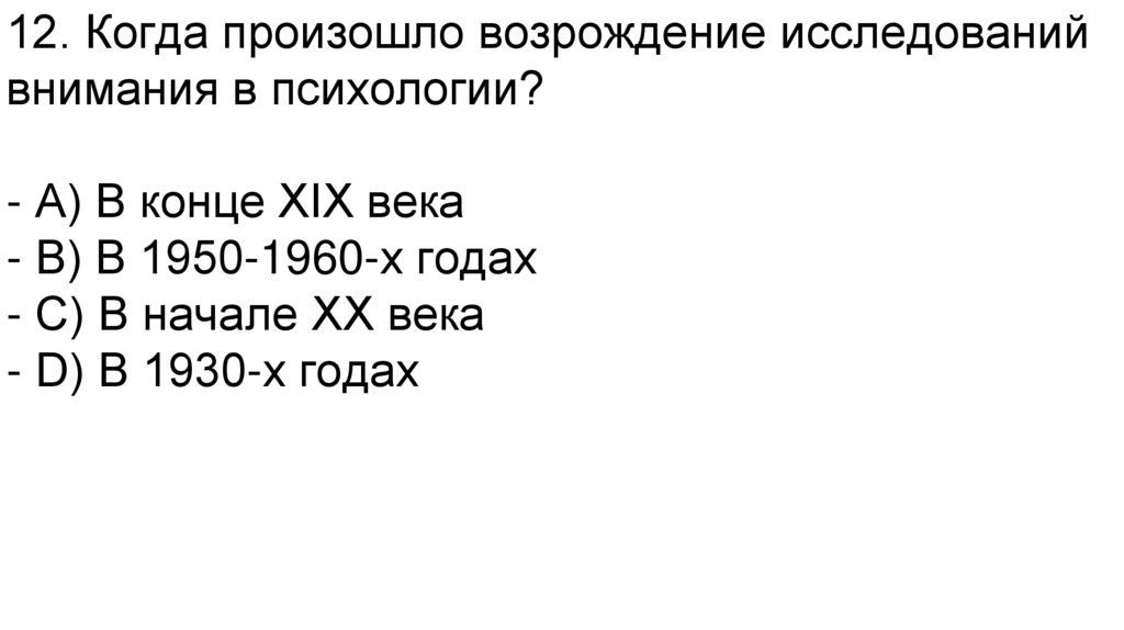 12. Когда произошло возрождение исследованийвнимания в психологии?