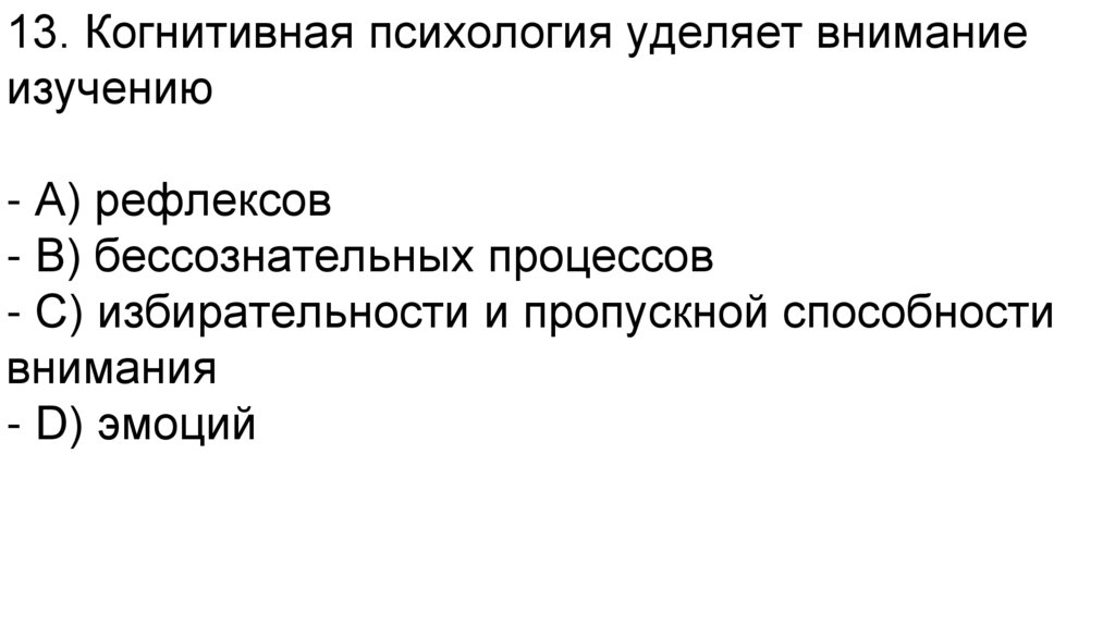 13. Когнитивная психология уделяет вниманиеизучению